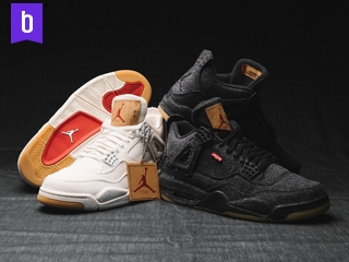黑白新色2018年年初時,JORDAN Brand 曾與知名的牛仔品牌 Levi's 攜手,以 Michael Jordan 在投進 "The Shot"時,著用的經典戰靴 AIR JORDAN 4 為基底,發表了藍色牛仔布款式的 AJ4。而近期為了致意 2008年時兩方聯名發表的 LEVI'S X AIR JORDAN 1 23/501 PACK 開啟了合作的機緣,兩品牌更推出了兩款新色的 LEVI'S X AIR JORDAN 4 NRG。 鞋款上運用了特殊材料的鞋舌標設計,並在其上標示了球鞋的尺碼與 AJ4 的鞋名。球鞋另外還附上了一張紅、金配色的字卡,上面以 "Levi's® and Jordan Brand are together again, fusing the signature Air Jordan style with the Levi's® Premium Denim…" 的字句,訴說了兩方合作的精心。