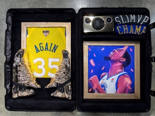 最後一款鞋曝光!過去幾個月包含 Nike、Converse、Jordan Brand 三大品牌攜手醞釀了包含 16款鞋款的 "Art Of A Champion" 系列,向 NBA 歷史上在季後賽中留名的偉大名將們致意。然而其中一款在形象照中被放置於畫面最高點籃球之上的鞋款,卻被品牌們以金質一般的綢緞覆蓋了起來,當時有消息傳出這一款鞋與今年拿下 NBA 總冠軍的得主有關,但鞋款卻一直沒有曝光。而就在今年金州勇士隊確定拿下冠軍以後,這款鞋才終於亮相。
