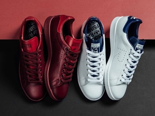 春季推出設計師 Raf Simons 與 adidas 再次聯手推出 Raf Simons x adidas Originals Stan Smith 為春季製作的鞋款作品,以經典鞋型 Stan Smith 分別包裹勃艮地紅與純白搭配夜空藍共兩款,兩款都採用皮革鞋面,鞋身側邊為人所知的穿孔 “R” 字則是 Raf Simons x adidas Originals Stan Smith 系列招牌設計,相較於其它 Raf Simons 為 adidas Originals 鞋款操刀之鮮明風格,Stan Smith 的做法用最直接的方式闡明合作企劃或者品牌的作法,算得上時下許多設計的先驅,鞋跟外側壓印設計師名且鞋墊印上象徵兩個品牌的聯名企劃字樣,顯現其特殊定位,鞋款現已在部分零售商以 320美金的價格販售。