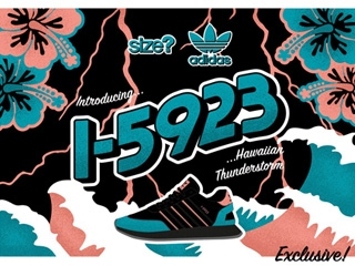 “Hawaiian Thunderstorm”Size? 推出獨家限定版本的 adidas I-5923 “Hawaiian Thunderstorm”,定價 100歐元在 4/6開售時就光速秒殺,以夏威夷風暴為靈感,將粉嫩色系撞色純黑彷彿分別象徵夏威夷花圈與風暴來臨時的烏雲,表現主題於 70年代經典跑步鞋款輪廓的 I-5923,搭配現代緩震科技 BOOST 自成一格。