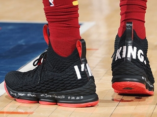 不怒而威的王者風範LeBron James 最近在做客紐約尼克隊的比賽時,著用了一雙全新配色的球員款 NIKE LEBRON 15 "I'm King" PE,鞋款在左右腳的後跟,設計了 "I'm King" 的字樣,展現了不凡的王者氣魄。LeBron 的綽號便是 King James,而也有人臆測,LeBron 特別在對上尼克隊的比賽中穿上此款球鞋另有原因,因為過去尼克的中鋒 Enes Kanter 曾在受訪時表示:「無論你要怎麼稱呼自己,是國王還是皇后、王子,我們不會讓你為所欲為。」所以 LeBron 才會在和尼克交戰時,著用 LEBRON 15 "I'm King" PE,不僅如此該役他更以 26分 6籃板 11助攻的實質表現,以王者之姿帶領球隊打敗對手。