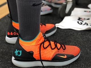限定配色鞋款亮相Nike Basketball 日前舉辦了夏季的 2018 Skills Academy 訓練營,而包含 KD11、PG2、KYRIE 4、LEBRON SOLDIER 12 的明星款簽名鞋都有搶眼的配色出現在訓練營中的球場上。系列鞋款在內外側的後跟或是綁帶的區塊設計了與電玩遊戲 2K 系列代表球員特殊能力標誌相似的圖樣,以可能擁有「防守大鎖」、「三分球」等意義的符號,點綴了球鞋。