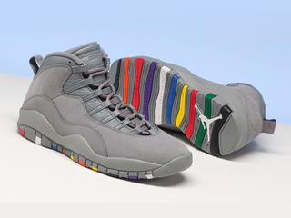 你們都是令人尊敬的對手低調素雅的 AIR JORDAN 10 "Cool Grey" 以飛人品牌代表性的「酷灰」元素設計鞋身,卻又在外底中設計了五顏六色的搶眼元素。原來高雅精緻的 AJ "Cool Grey",是透過鞋底的美麗色彩,悄悄道來了 Michael Jordan 在拿下每一座 NBA 總冠軍之前,和強敵們奮戰的故事。不管是 Jordan 早期對抗的「壞孩子」底特律活塞、曾在對戰時拿下季後賽史上最高單場得分 63分的波士頓賽爾提克配色都出現在外底上,而代表 1991、1992、1993 一共三年的 NBA 總冠軍戰對手洛杉磯湖人、波特蘭拓荒者、鳳凰城太陽的色系也能在外底上見到。