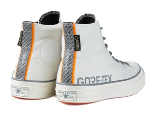 完整全貌揭露以 Chuck 70 作為最新一季的合作藍本推出兩款配色,除了在腳後跟處採用反光條外,側面也使用反光面料寫上 GORE-TEX 的字樣。