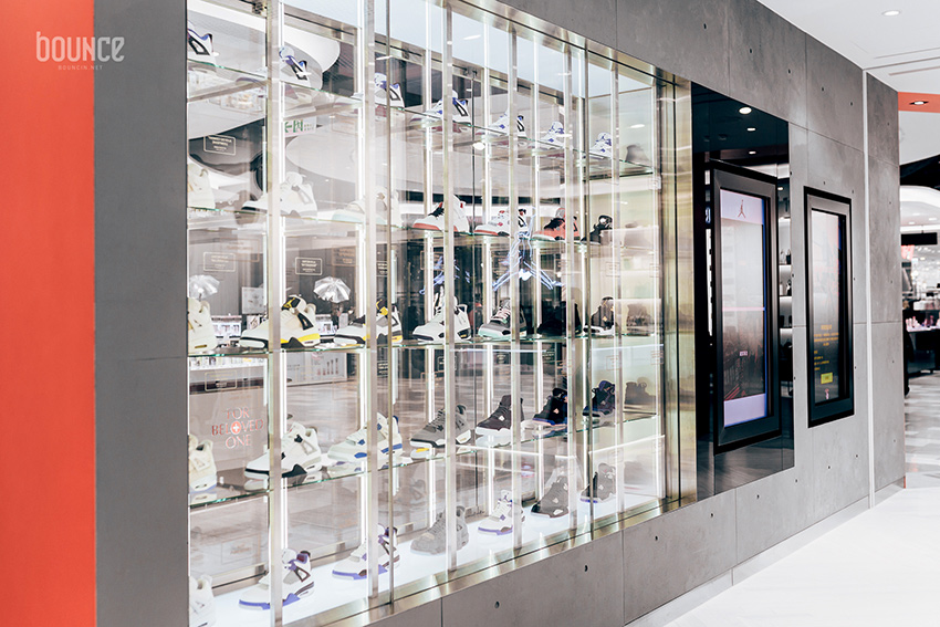 同時 JORDAN 品牌也順應今年 AJ IV 的盛宴,在位於台北市信義區松高路 16號的 JORDAN 16 SONGGAO 展出多位收藏家私藏的多樣經典配色,舉凡重塑潑墨意象的 "Oreo" 配色、2013年夏天清新的 "Green Glow"、騎士隊的 "Cavs" 色系、佈滿 Jordan 鐳射圖騰的 "Laser"、以 Jordan 童年綽號 "Black Cat" 所發想的配色等豐富款式。